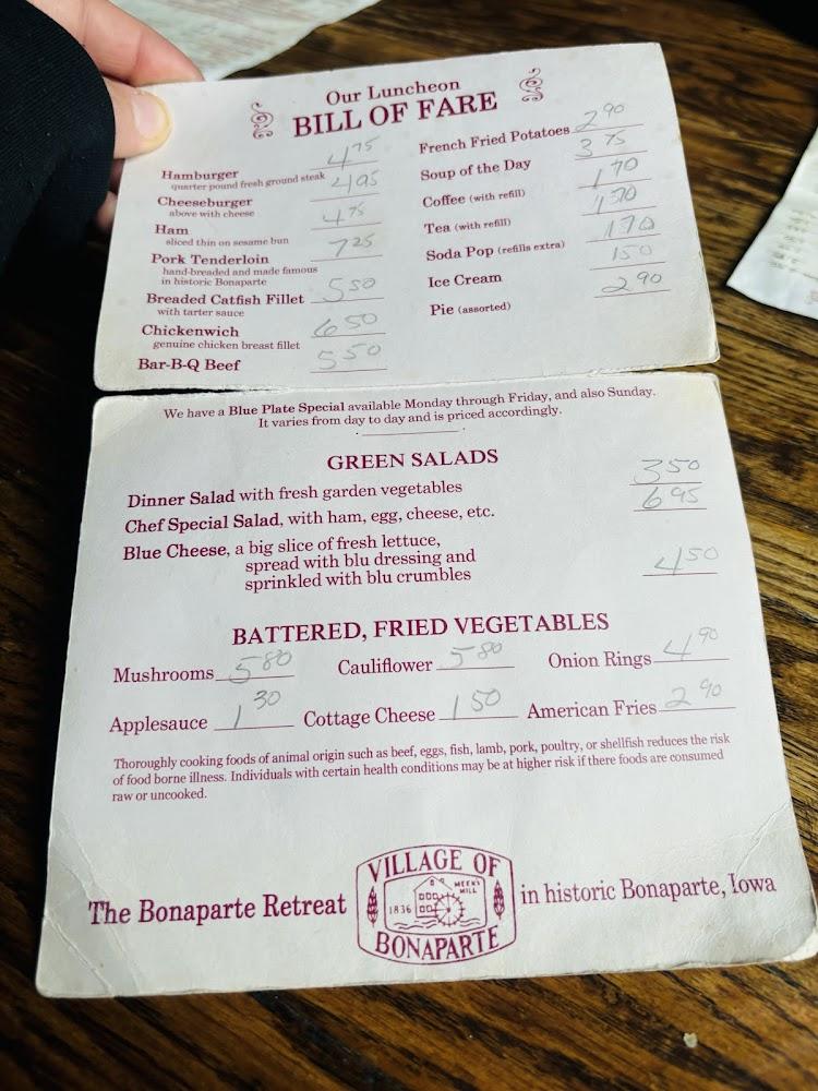 Welcome to Bonaparte Retreat, your go-to destination in Bonaparte, Iowa! Nestled at 713 1st St, our cozy American restaurant specializes in delightful local cuisine, offering a range of tasty dishes for lunch and dinner. Enjoy our excellent coffee and mouthwatering desserts in a welcoming atmosphere, perfect for solo diners or groups. With convenient services like takeout, delivery, and accessible seating, we ensure a relaxed dining experience for everyone. Join us for a meal accompanied by fine wines, craft beers, and signature cocktails. Reservations are accepted, so come savor the charm of Bonaparte Retreat today!
